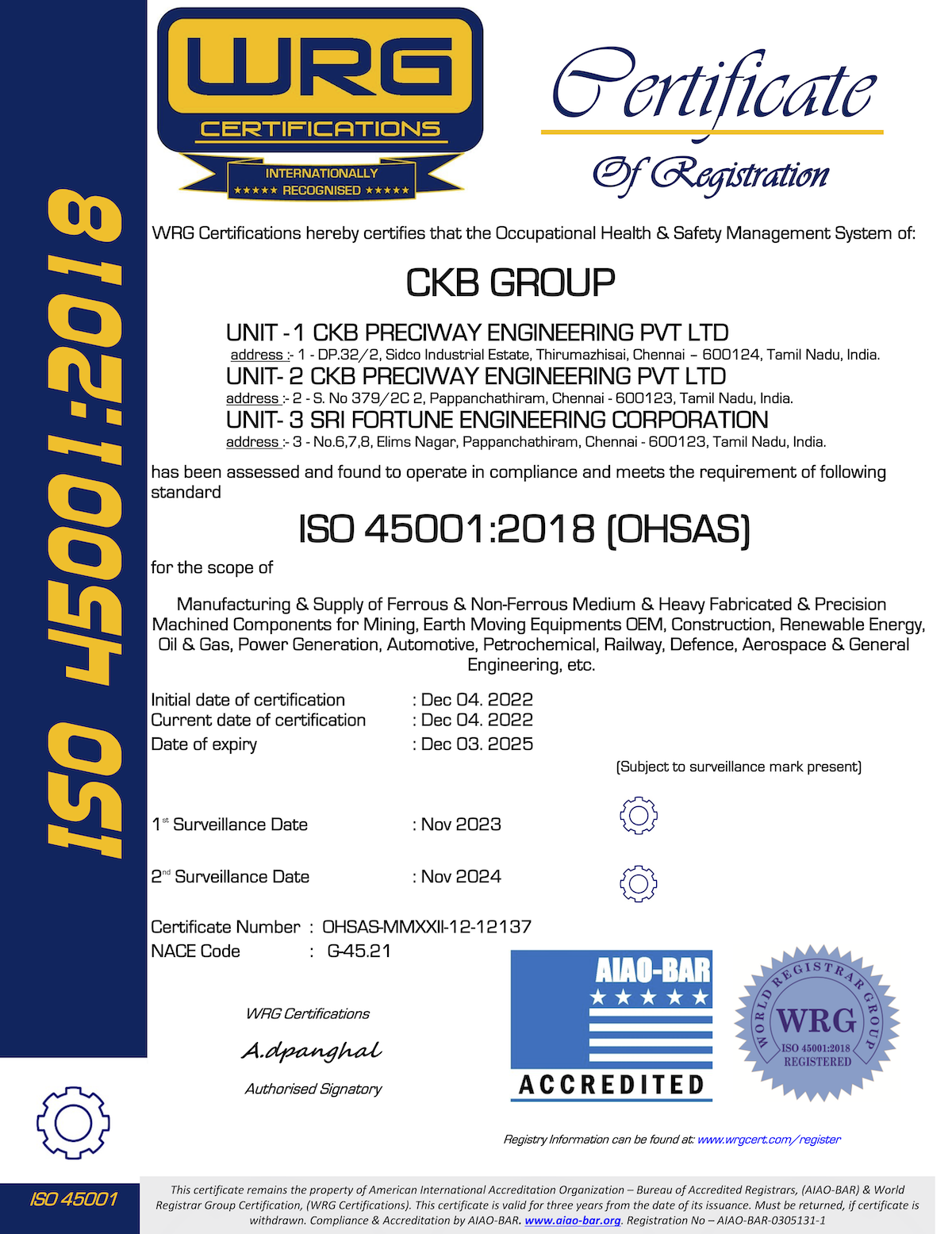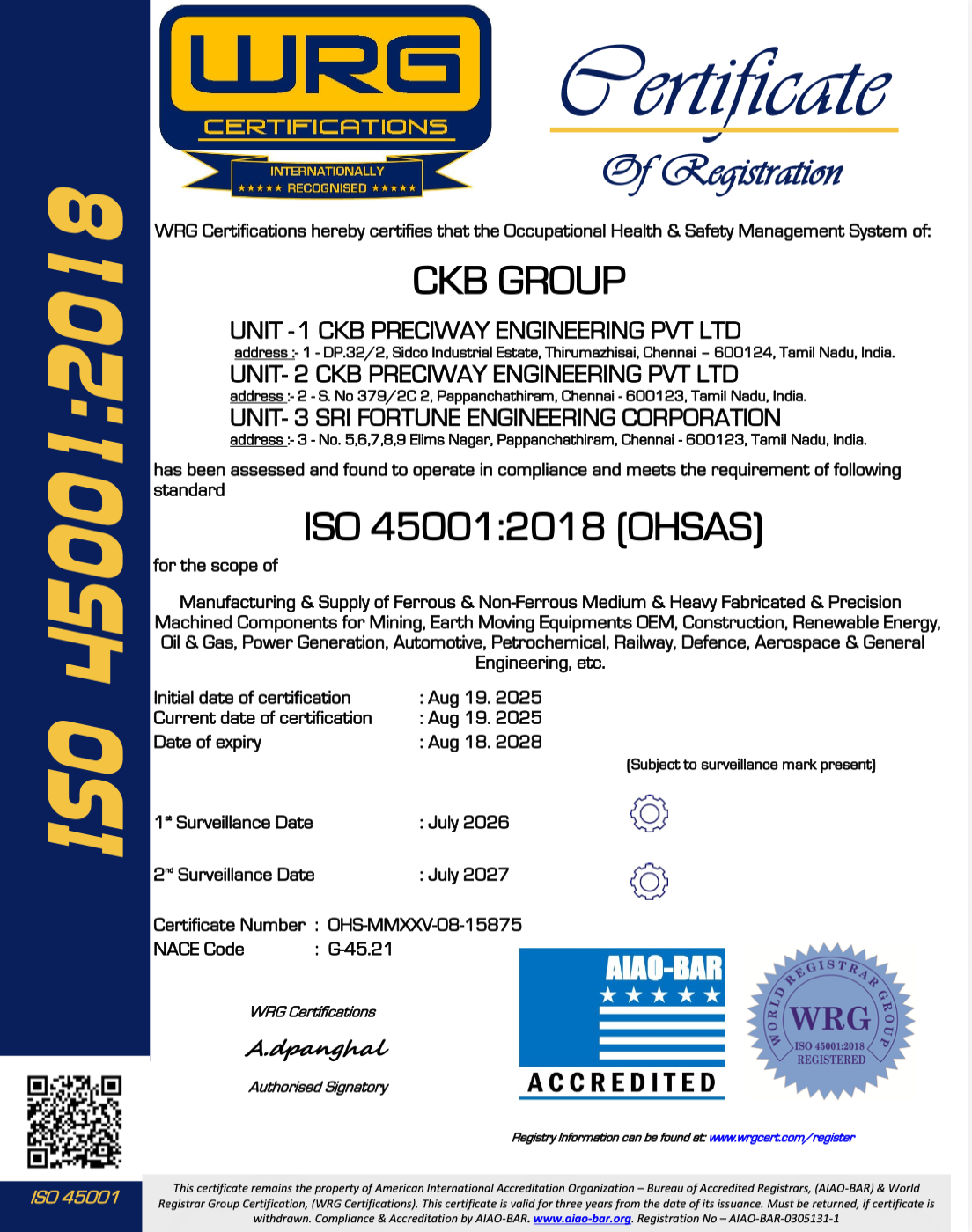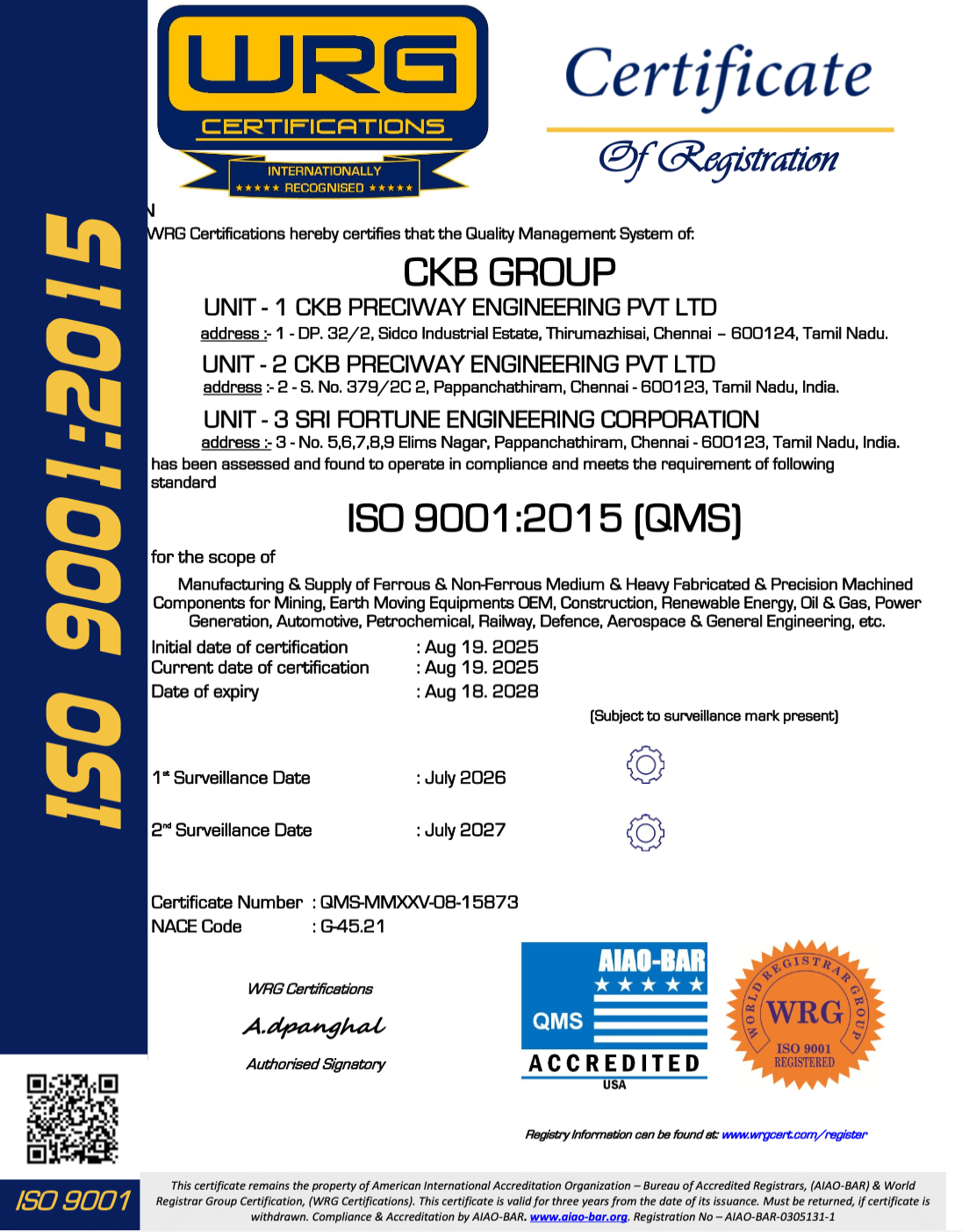 "CKB GROUP" Committed to Achieve Total Customer Satisfaction, Understanding and Fulfil the Needs and Expectations of Our Interested Parties by Delivering Reliable, Competitive, Quality Products and Services by Effective Management and Employee Involvement Through Continual Improvement in Quality, Environmental, Health and Safety Management System.